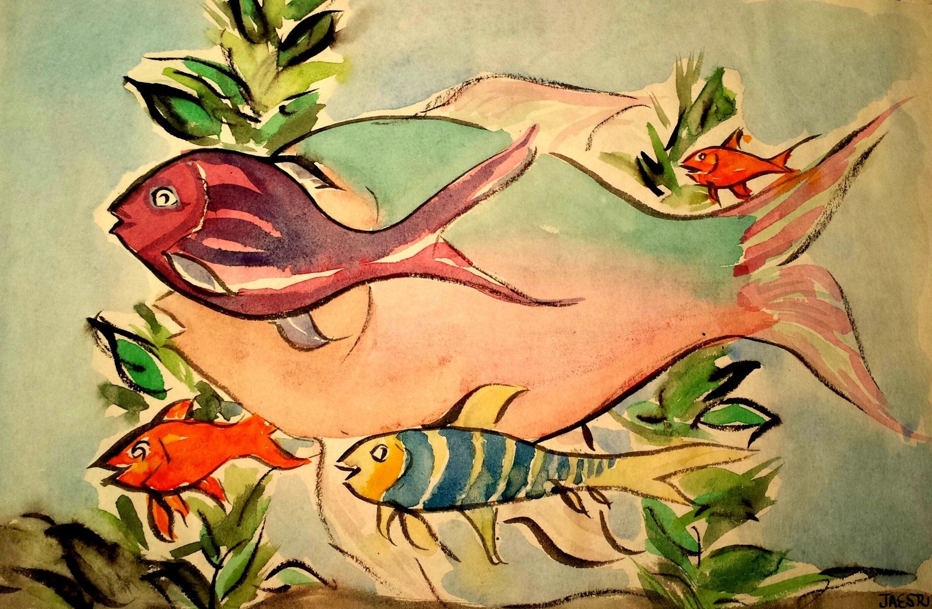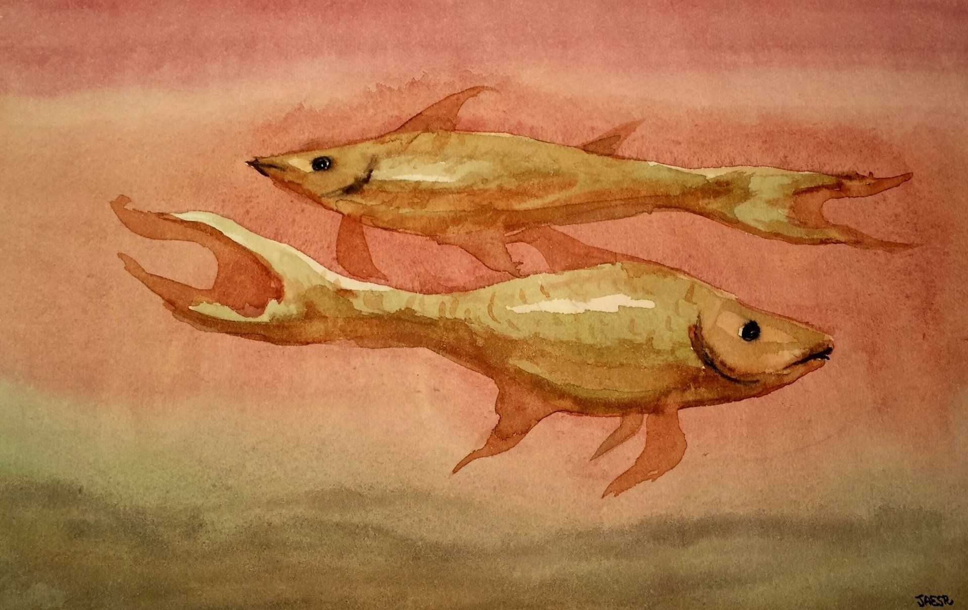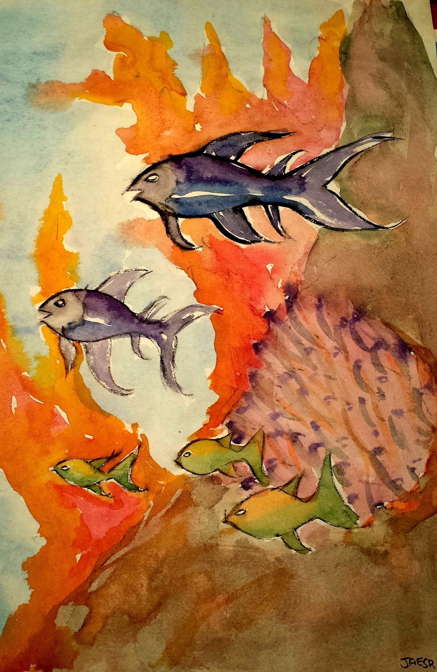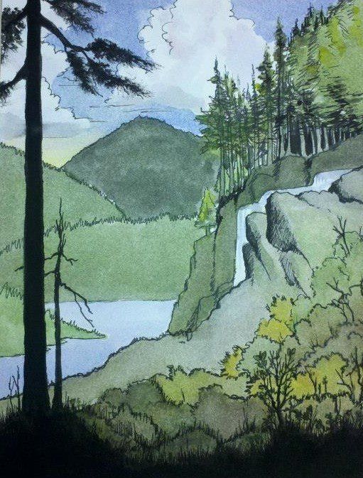 Watercolor pieces-- some with ink;